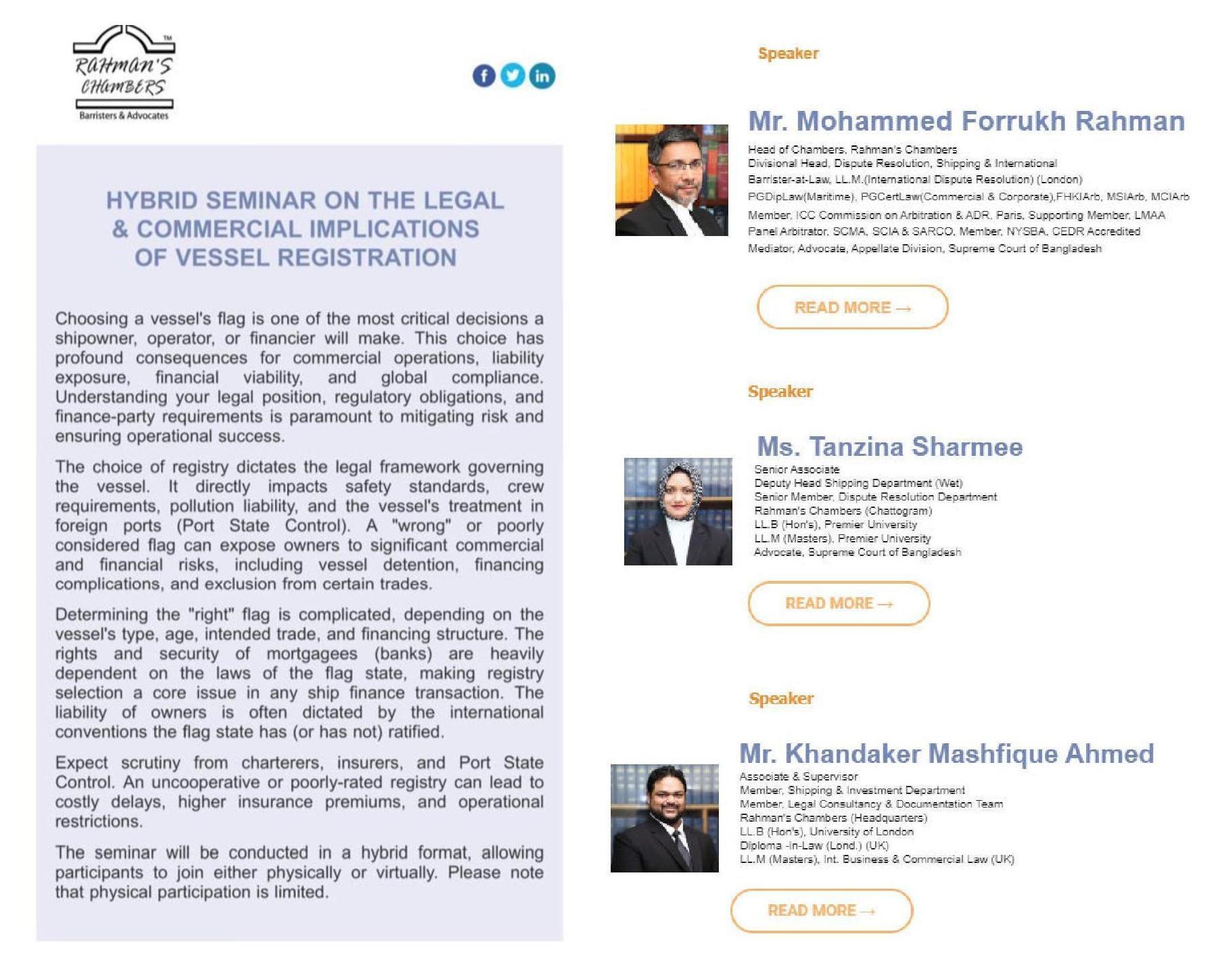 HYBRID SEMINAR ON THE LEGAL & COMMERCIAL IMPLICATIONS OF VESSEL REGISTRATION